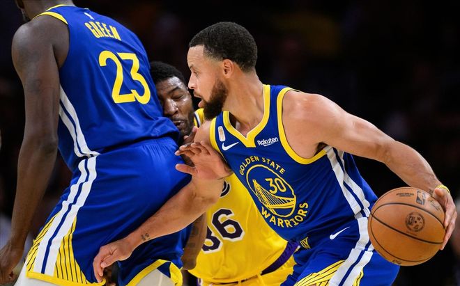 每当湖人试图缩小分差,库里和巴特勒总能给出回击,他们解决问题的方法就是——库巴挡拆。特别在第四节湖人要起势的节骨眼上,库里和巴特勒每每通过挡拆把难题交到紫金军团面前,是追持球人还是挡拆人?两杯毒药总要喝一杯。相信不少勇士球迷对这一幕很是熟悉,这不就是当初库里和杜兰特战术的复刻版吗?