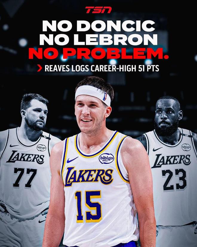 - 2025年10月27日 里夫斯生涯新高51分!湖人力克国王 艾顿22+15 威少18+6+6
