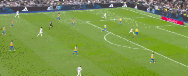 第44分钟,贝林厄姆禁区弧顶摆脱后直接远射破门,帮助皇马3-0扩大领先优势。